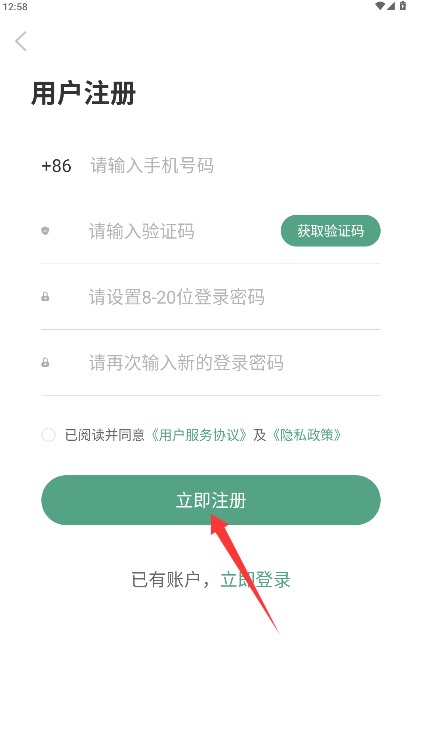 准确填写手机号码并获取短信验证码,设置一个安全的登录密码,完成账户注册后返回登录界面,输入已注册的手机号和密码,点击登录即可进入主界面开始使用。