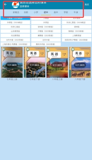 在主界面点击教材中心,选择其他版本后确认切换,原有学习记录会自动保存,不影响进度。