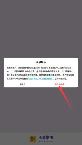 在本站下载并安装全能抠图软件,启动后仔细阅读相关协议,确认无误后点击同意进入主界面。