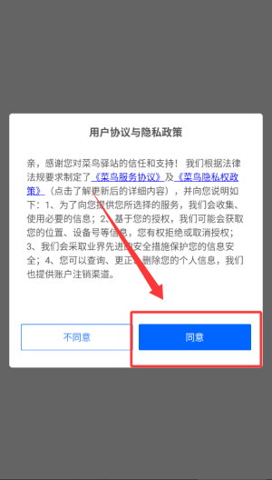 在本站下载安装菜鸟驿站掌柜软件后,首次启动需仔细阅读隐私协议。