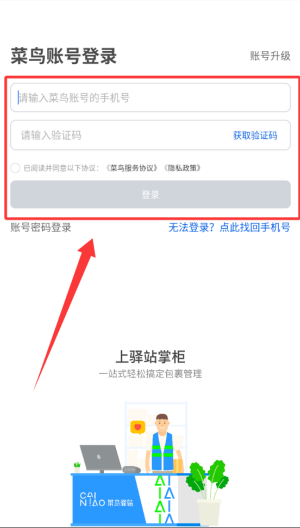 返回登录页输入该手机号,获取短信验证码完成登录。之后即可使用查件、寄件、入库等核心功能,操作过程均有引导提示。