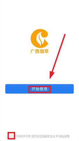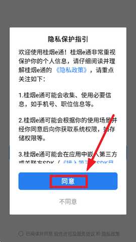 在本站下载桂烟e通软件后,首先打开软件并同意隐私保护指引。