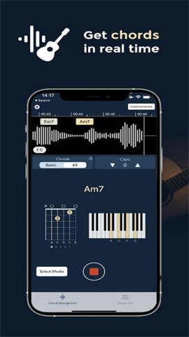 实时和弦识别功能使得用户能够通过设备的麦克风即时识别正在播放的音乐,极大地提高了学习效率。
