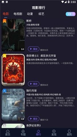 丰富多样的片源:软件提供了涵盖最新和最热的电影、电视剧、综艺、动漫等多种内容,随时选择自己喜欢的节目,满足不同观影需求。