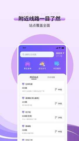 附近站点定位:自动识别用户的实时位置,展示周边公交站点及其距离,支持导航前往,解决找站难的问题。