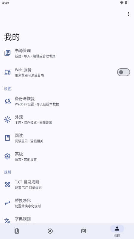 简易的书源管理功能使得轻松导入和管理各种书源,快速找到自己喜欢的书籍。
