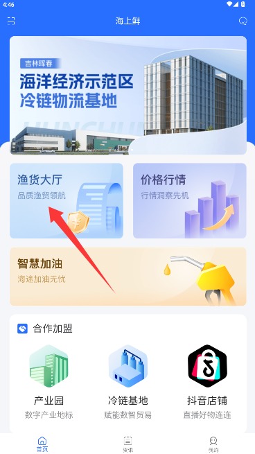 进入首页后,选择渔货大厅功能模块,浏览各类新鲜海产品的供应信息与价格,找到心仪的海鲜产品后,点击进入详情页面,完成购买操作流程。