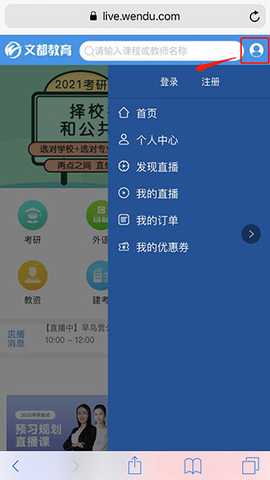 1、点击右上角用户图标登陆或注册个人账户;