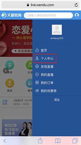 2、登陆后点击右上角用户图标进入个人中心;