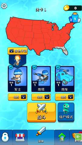 进入游戏后,会看到军士、炮塔和炮车的界面,点击开始战斗即可进入战斗状态。