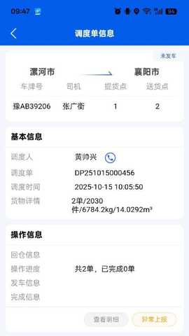 调度单查看:实时查看调度单信息,方便司机对订单进行有效管理和处理。