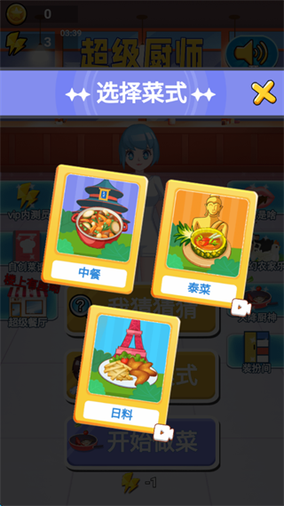 提供了多种角色装扮选项,根据自己的喜好自由选择,打造个性化的厨师形象。