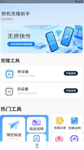 在本站下载备份数据导入后,首先打开软件,进入首页,会看到许多实用工具可供选择。选择您需要的功能,准备开始数据迁移。