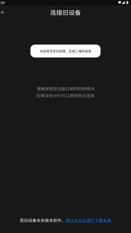 需要在新设备上打开软件,并授予必要的定位权限,以生成二维码信息。