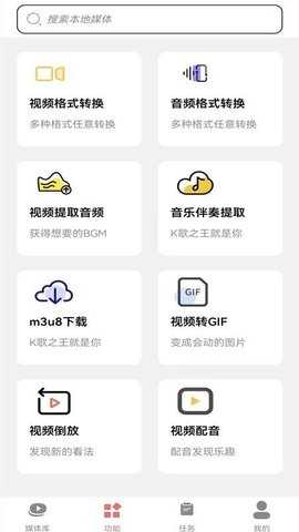 根据需求选择格式转换、音频提取或视频转GIF等功能模块,进入对应功能界面。
