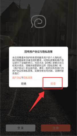 1. 启动回吧App,阅读并同意用户协议和隐私政策后进入应用。