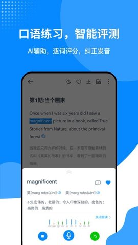 播放英语音频,结合自定义的播放设置进行听力训练,阅读经典美文,提升自己的阅读理解能力。