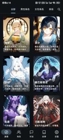 接下来,您可以左滑屏幕编辑角色的名称和密钥,或者直接选择感兴趣的角色故事进行体验。首页提供了丰富的角色故事供您选择。