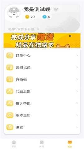 个人中心:在个人中心中,查看订单、请假记录、兑换码等信息,方便管理个人学习情况。