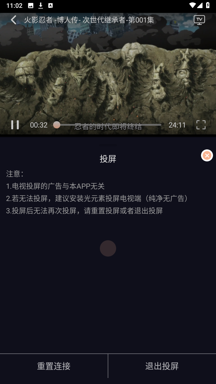 在播放界面点击右上角「投屏」图标