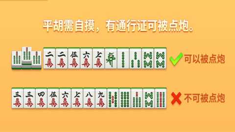 平胡需自摸,有通行证可被点炮。