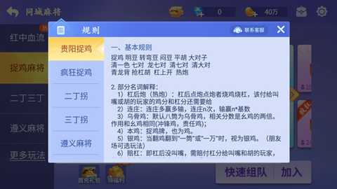 微乐捉鸡麻将是一款在贵州、云南等地区备受欢迎的麻将游戏,充分体现了地方特色和传统文化,保留了捉鸡玩法的独特魅力,核心规则包括特殊的计番方式和捉鸡机制,通过抓取特定的牌型或风牌来获取额外奖励。游戏的设计注重还原本地的玩法,提供流畅的对战体验,融入社交互动功能以及地方语音,使得能够随时随地享受充满刺激与变数的麻将乐趣。