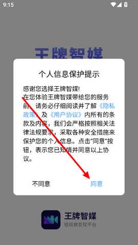 2、同意隐私权限,进入注册登录界面,注册王牌智媒平台账号。