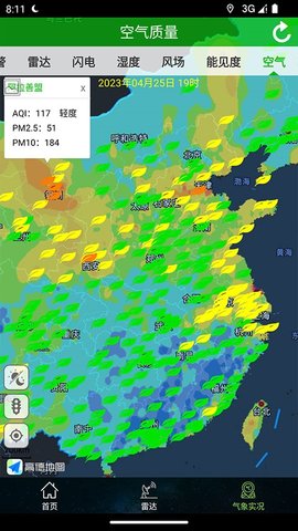 通过点击雷达栏目,播放按钮即可接收最新的天气实况,实时掌握天气变化,确保出行安全。