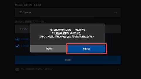 3. 选择地区,输入出生时间(建议选择大于18岁),点击“继续”和“确定”。