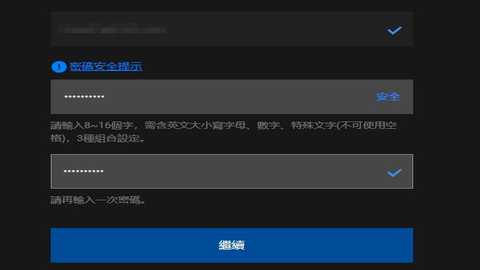 6. 输入密码(注意密码不能包含“123”等连续数字),点击“继续”。