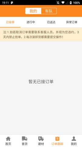4. 该软件对订单进行详细分类,方便你跟踪订单状态,包括已接单、进行中、已送达和异常订单。