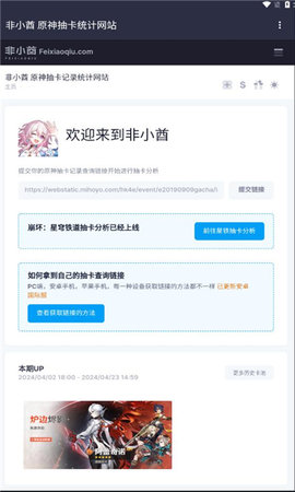 打开非小酋软件,进入主页后,复制您的抽卡记录查询链接并粘贴到指定位置,点击提交即可完成上传。