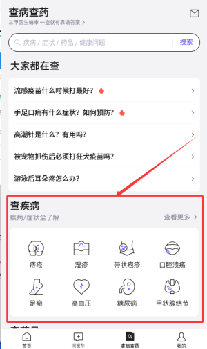 查病查药:进入查病查药板块,详细了解病症的相关信息及药品的使用指南。