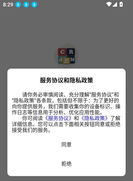首先打开软件,点击“同意”按钮,进入 app 界面。