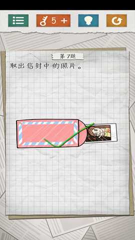 7、按住信封,然后将手机向右边倾斜倒出照片。