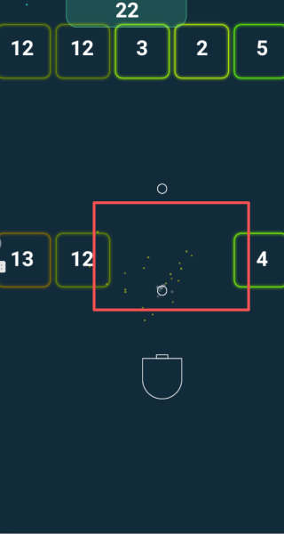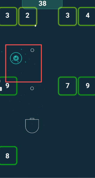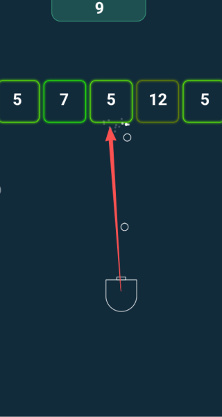 1、主要的玩法就是控制着下面这个发射装置,不断进行射击,将上方的方块消除。