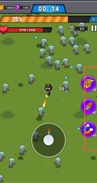 这款游戏操作简单,通过点击屏幕控制角色移动,击杀不断来袭的僵尸。