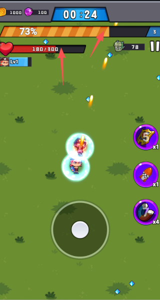 战斗中,可以使用多种辅助道具,如无敌护盾和冰冻手雷,这些道具能够在关键时刻帮助逆转战局。