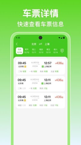 极速查票:实时查看各趟列车的余票情况,确保不遗漏任何购票机会。