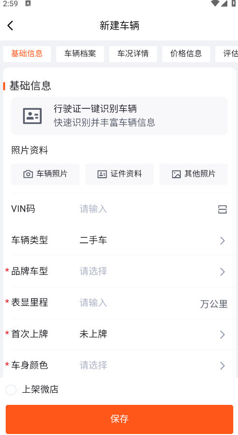 2、进入新建车辆页面,按要求填写车辆相关信息,完成后点击“保存”即可。
