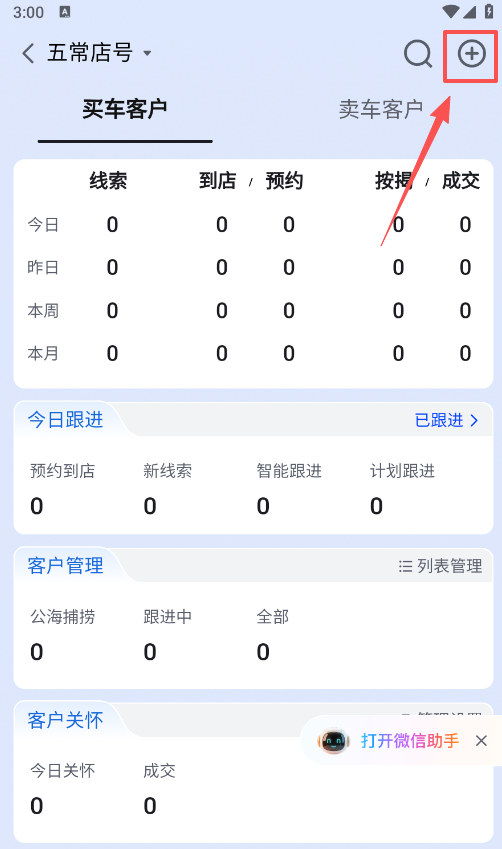 2、进入客户管理页面后,点击右上角的“+”号按钮。