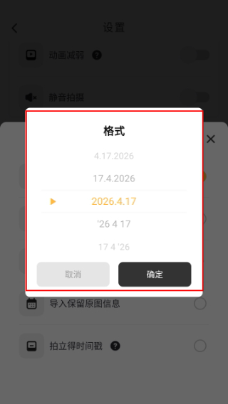 3、弹出日期戳弹窗,点击选择日期戳格式。