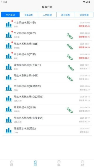 3、点击页面下方的“异况”选项,即可查看异常台账信息,方便您及时了解和处理生产过程中的异常情况。
