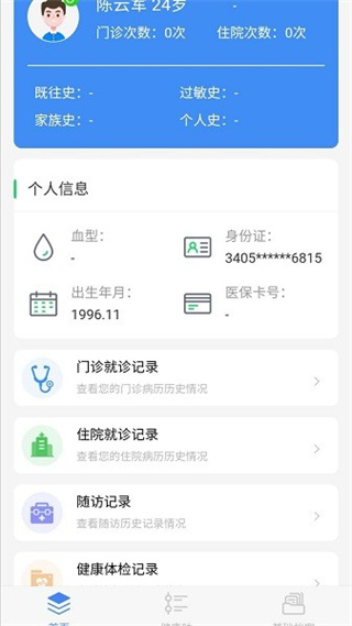 只需在首页点击健康档案模块,即可查看以往的门诊和住院记录,方便随时了解健康历史。