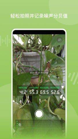 在本站下载噪音分贝仪后,首先打开软件,启动相机功能以开始拍摄,点击快门按钮即可完成现场照片的拍摄,并同步记录当前的分贝数据。