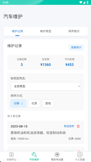 2、汽车维护:记录你的历史保养信息和维护类型,并智能推送保养周期提醒,让你的爱车保持最佳状态。