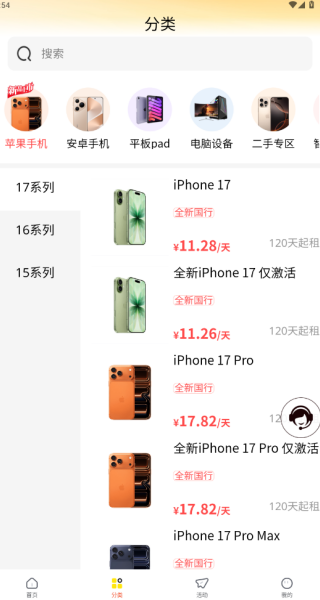 分类筛选功能:通过分类板块,快速筛选出符合需求的数码产品,提升租赁效率。