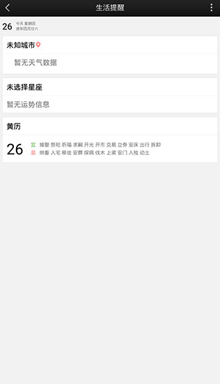 3. 点击“生活提醒”按钮,就能看到更加详细的天气数据、星座运势、黄历等内容,为你的一天提供全面的信息参考。