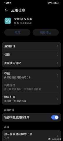 用户可在手机的设置中找到关于手机选项,进入后找到法律信息,在此可以查看荣耀RCS服务的具体版本信息。