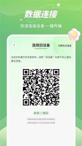 接下来,选择扫描二维码功能,使用旧手机扫描新手机上显示的二维码,以建立两台手机之间的连接。连接成功后,用户将看到可迁移的数据类型。